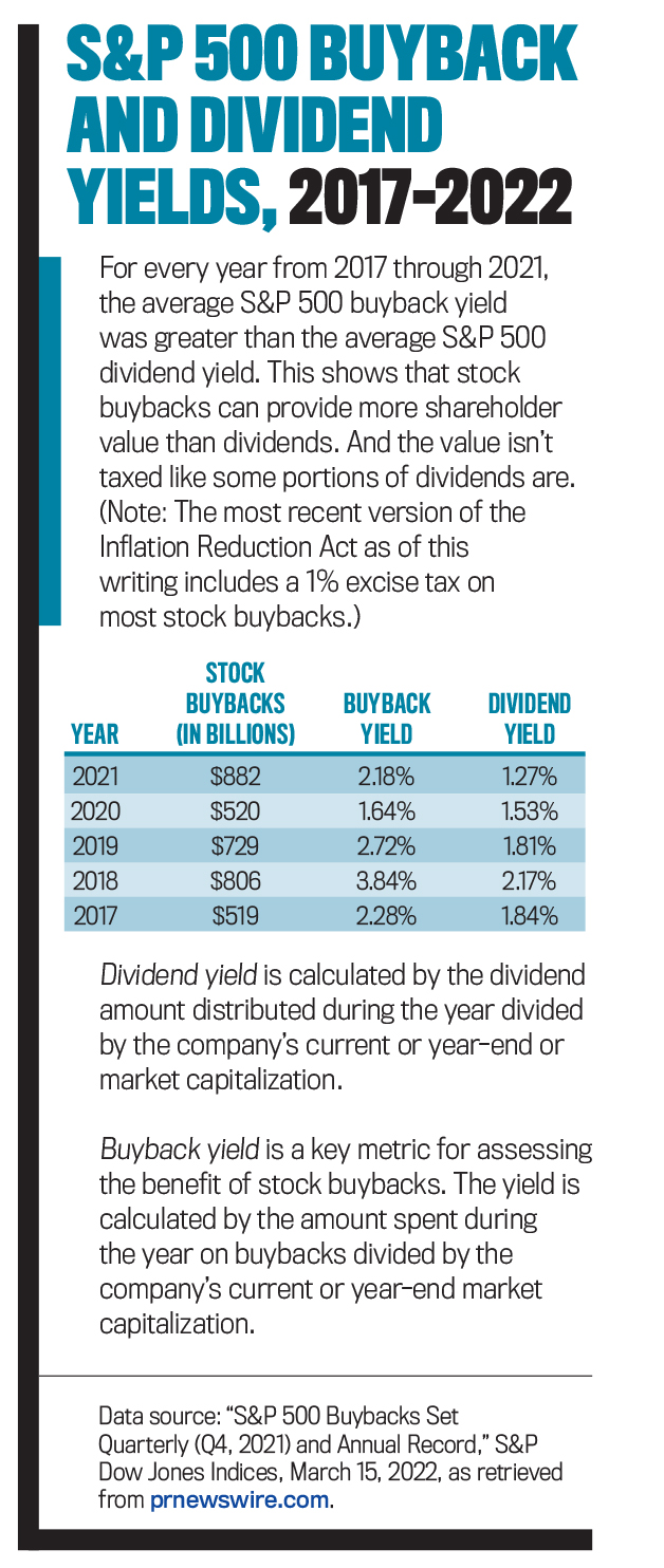 Stock buybacks enhance shareholder value by reducing the number of shares outstanding. Consequently, earnings per share (EPS) rises and stock price will tend to increase too. If carefully planned, the buybacks should occur when stock prices are “undervalued” to make the committed buyback funds stretch further.