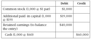 - Additional paid-in capital is debited by the number of shares repurchased multiplied by the average per share of any additional paid-in capital from the original stock issuance.