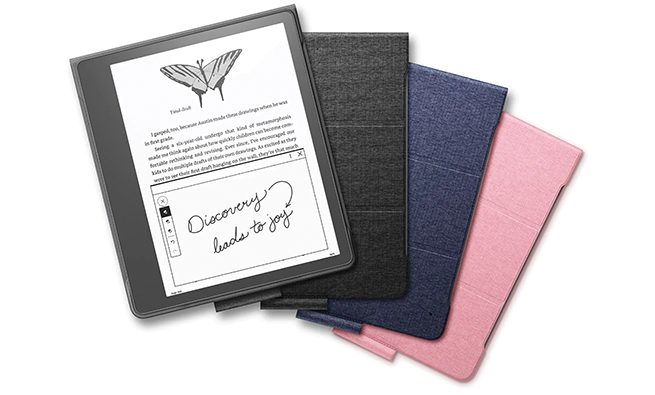The long-awaited large-format Kindle with full note-taking abilities has finally arrived in the Kindle Scribe. With a 10.2" E Ink screen and new notetaking software, the e-reader is modestly priced at $339.99 and has one other unique feature—a 300 ppi front-lit screen that has adjustable warm light. The Basic Pen magnetically attaches to the side of the Scribe and needs no batteries, and the Premium Pen has a customizable shortcut button and an eraser sensor on top. While reading, you can tap on the text and handwrite a note that gets stored in your Kindle collection. PDF markup is possible, and other formats supported include e-books, saved web pages, and others including Word docs. The Scribe is a mere 0.22" thick and weighs 15.3 oz. www.amazon.com