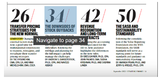 And highlighted article titles in the table of contents will take you to that page within the digital edition: