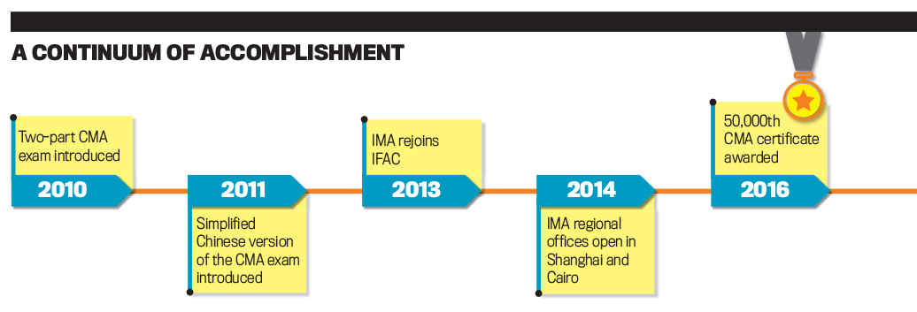 Despite much progress and a more than 100-year history, IMA has sometimes struggled with its image, Jeff admits. He points to the competitive challenges that the association has faced, most dauntingly in 2011 when the American Institute of Certified Public Accountants and the Chartered Institute of Management Accountants began offering the CGMA (Chartered Global Management Accountant) program. It prompted a period of deep evaluation—and inspired the CMA tagline, “You’ve got to earn it,” and a global advertising campaign that has now spanned seven years.
