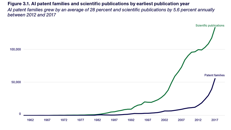The first publication in the WIPO Technology Trends series was released Thursday, January 31, 2019, in Geneva, Switzerland. The study considered more than 340,000 AI-related patent applications and 1.6 million scientific papers published since AI arrived on the scene in the 1950s. The agency notes in its summary that what had been a gathering storm of applications before 2013 has since become a blizzard.